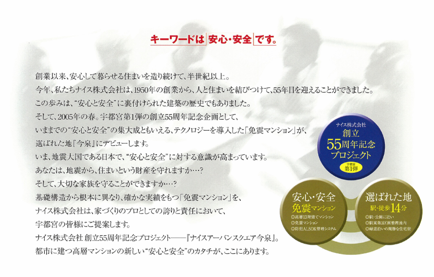 ※上記の内容は分譲当時のパンフレット内容を基に掲載しております。掲載している画像、素材などの情報は分譲当時、竣工時に作成、撮影したものになります。